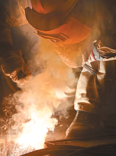 電焊工人正在施工。