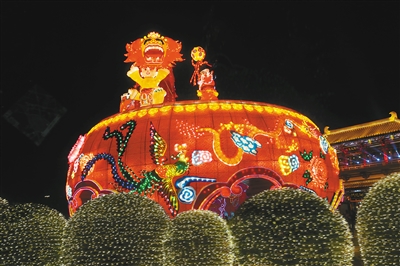 安塞腰鼓作為國(guó)家非物質(zhì)文化遺產(chǎn),被譽(yù)為天下第一鼓。記者昨日在現(xiàn)場(chǎng)看到,“中華第一鼓”直徑30米,高20米,以陜北的安塞腰鼓的外形為主體設(shè)計(jì),讓中國(guó)傳統(tǒng)民間藝術(shù)通過花燈的形式再度煥發(fā)光彩。每當(dāng)夜幕降臨,巨型大鼓流光溢彩,閃耀著吉祥而璀璨的光芒,游人們流連忘返,圍繞著巨鼓爭(zhēng)相合影留念,將美好的風(fēng)景永久保存留念。