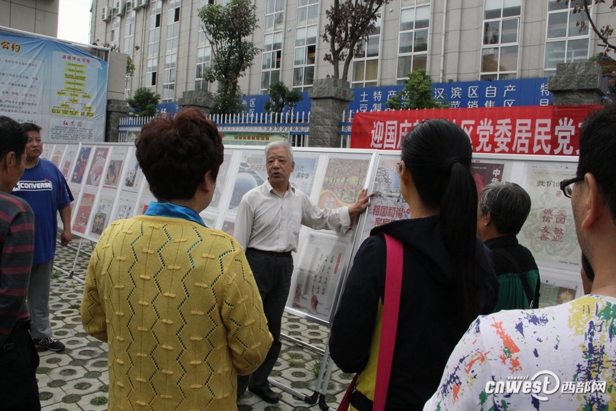市民認(rèn)真傾聽楊建安講述收藏報(bào)紙公益廣告的經(jīng)歷。 西部網(wǎng)安康訊(記者 毛明博)單一的報(bào)紙公益廣告給人的印象可能不深,但把不同內(nèi)容的公益廣告用展板展出來,通過文字間不同組合與圖案設(shè)計(jì),那給人的印象可就深刻了。今天(9月29日),安康65歲退休職工楊建安在漢濱區(qū)老城辦鼓樓社區(qū)支持下將珍藏的100張省內(nèi)外報(bào)紙中的公益廣告集中展示,與社區(qū)群眾喜迎國(guó)慶節(jié)被點(diǎn)贊。 “沒有共產(chǎn)黨就沒有新中國(guó)”、“億萬(wàn)人民昂首闊步,民族振興圓夢(mèng)中華”、“國(guó)家好,民族好,大家才能好”、“社會(huì)主義好,百子樂中華”……今天(9月29日)上午,在鼓樓社區(qū)居委會(huì)附近居住的劉興勤見到這些色彩明亮,文字洗練的報(bào)紙公益廣告時(shí)立馬被吸引住了,她邊看邊念邊評(píng)論,“把報(bào)紙公益廣告排列起來展覽,看后很振奮! 看到這些耳熟能詳?shù)墓鎻V告詞以及不同報(bào)紙排列后產(chǎn)生的美感,讓途經(jīng)此處的市民李萍也停住了腳步。她拿起手機(jī)把這些公益廣告拍照留念,她說,“這下可有給孩子講的知識(shí)了! 鼓樓社區(qū)黨支部書記馬英介紹,這次主題為“喜迎國(guó)慶節(jié) 放飛中國(guó)夢(mèng)”新民風(fēng)建設(shè)專題收藏展是與在社區(qū)居住的民間收藏家楊建安共同舉辦的。通過公益廣告展覽,以達(dá)到迎國(guó)慶,激發(fā)社區(qū)群眾熱愛祖國(guó)、擁護(hù)中國(guó)共產(chǎn)黨,踐行社會(huì)主義核心價(jià)值觀、傳遞正能量的目的。 據(jù)了解,今年65歲的楊建安系原安康郵電局退休職工。1996年,他偶然得到幾張上世紀(jì)60年代的報(bào)紙,遂萌發(fā)收藏的念頭。幾十年來他輾轉(zhuǎn)陜西、江西、廣東、北京、上海等省市收集報(bào)紙。近年來,在安康市文化文物廣播電視新聞出版局支持下,楊建安曾多次在安康舉辦以愛國(guó)主義教育為內(nèi)容的報(bào)紙和實(shí)物展覽,受到各界好評(píng)。