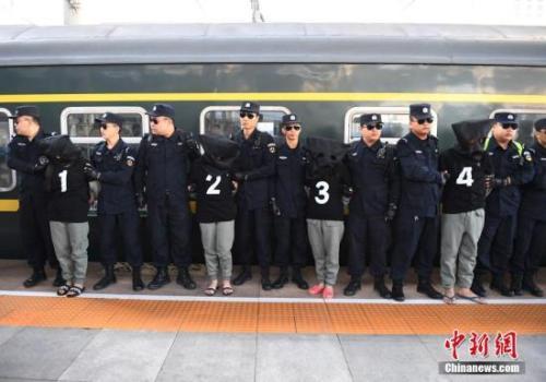 2017年8月29日,長春火車站,10名電信詐騙犯罪嫌疑人被長春警方從國外經(jīng)云南押解回國。中新社記者 張瑤 攝