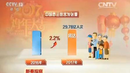 中國雞年春節(jié)七天假期,帶動的是40天的大遷徙。國家發(fā)改委、交通運(yùn)輸部等部門預(yù)測,2017年中國春運(yùn)旅客發(fā)送量將達(dá)29.78億人次,同比增長2.2%。其中,道路25.2億人次,增長1%;鐵路3.56億人次,增長9.7%;民航5830萬人次,增長10%;水運(yùn)4350萬人次,增長2%,近十年春運(yùn)交通數(shù)據(jù)幾乎年年創(chuàng)新高,說明春運(yùn)規(guī)模在逐年擴(kuò)大。