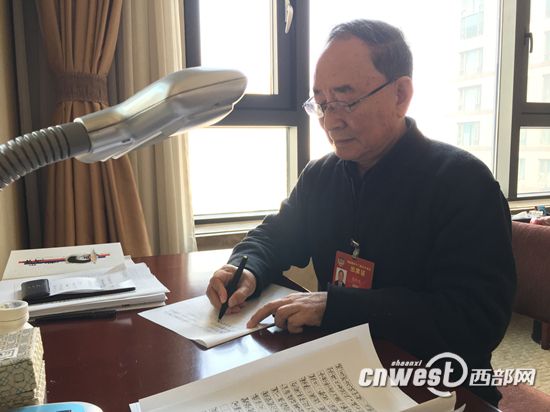西部網(wǎng)、陜西頭條記者3月4日在采訪時(shí)發(fā)現(xiàn)了一份特殊的提案,這份提案全部由手寫完成,字跡工整,它的作者正是來(lái)自陜西的全國(guó)政協(xié)委員、省文學(xué)藝術(shù)界聯(lián)合會(huì)副主席雷珍民!拔蚁M眢w力行影響更多的年輕人,弘揚(yáng)傳統(tǒng)文化!崩渍涿裾f(shuō)。