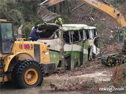 4月2號晚上10點多,一輛從上海開往四川通江的客運班車,在經過漢中西鄉(xiāng)縣時墜入了十多米深的山溝,當時車上共有25人,事故造成4人死亡3人重傷。事故發(fā)生后,省委省政府高度重視,省委書記婁勤儉批示:要全力搶救傷員,省公安、衛(wèi)生、安監(jiān)部門予以指導、支持,迅速查明原因,防止次生傷害,全面做好安全工作。省長胡和平批示:要全力救治傷員,查明事故原因,做好處置及善后工作,防范類似事故發(fā)生。