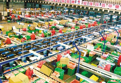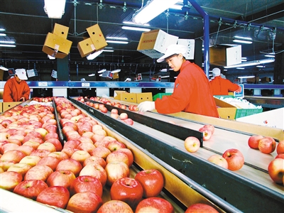陜西蘋果企業(yè)的現(xiàn)代化果品分揀線