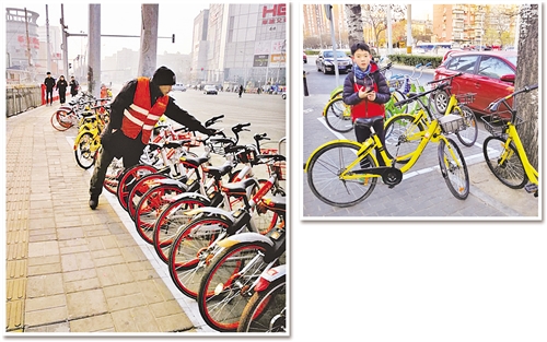 左圖 摩拜的管理員正在通過檢查確保每一輛共享單車都能夠使用。 佘 穎攝