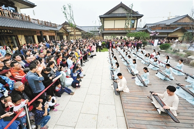 市民在西咸新區(qū)灃東新城灃濱水鎮(zhèn)·詩(shī)經(jīng)里感受傳統(tǒng)文化 (資料圖片) 記者張宇明 攝