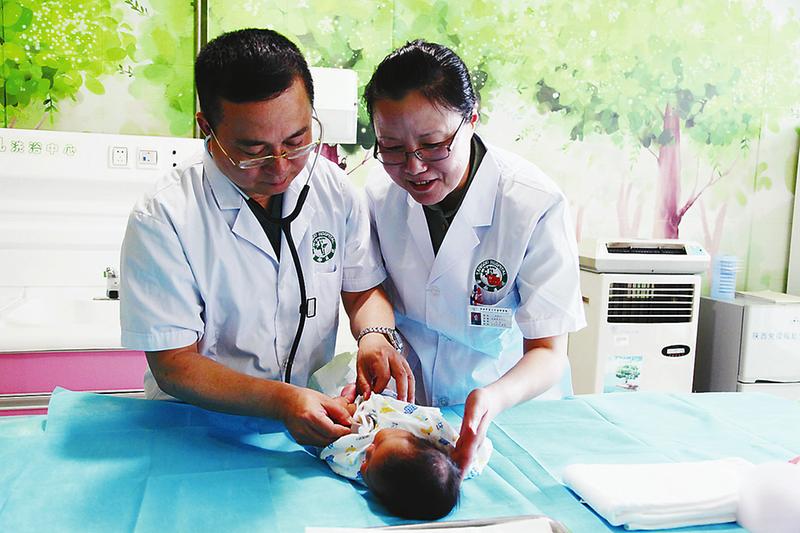 唐都醫(yī)院醫(yī)生為寶寶檢查。