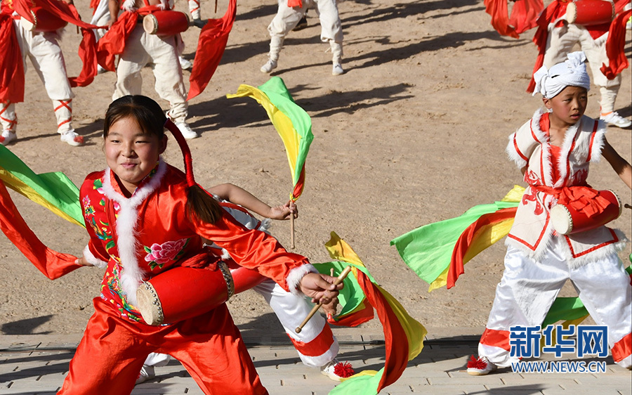 周圍鎮(zhèn)村的小朋友也加入到打腰鼓的隊伍當中。新華社記者 張斌攝