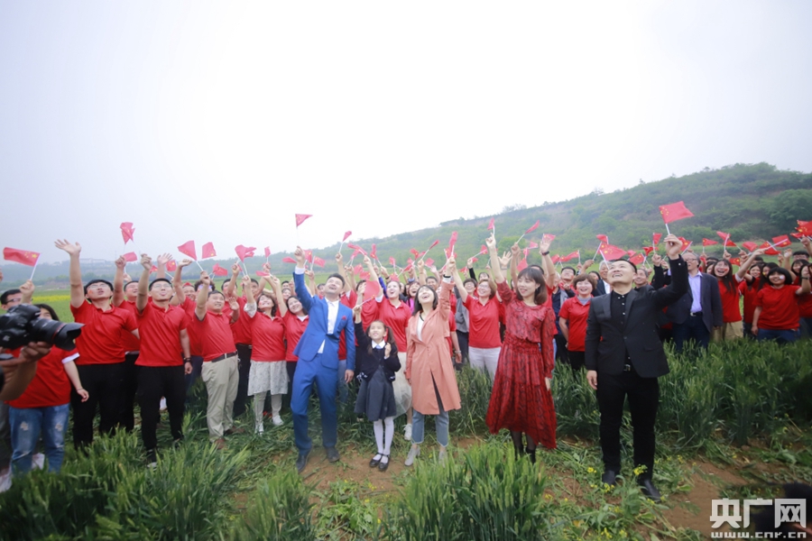 央廣網(wǎng)西安5月7日消息(記者舒隆煥)麥田里用油菜花勾畫的“楊凌 祝福祖國”大地景觀格外引人注目,綠油油的麥田與黃澄澄的油菜花在微風(fēng)的吹拂下遙相呼應(yīng)......5月5日,一場“我愛我的祖國”快閃活動在陜西省楊凌示范區(qū)上演,近200名農(nóng)科專家、職業(yè)農(nóng)民、農(nóng)科專業(yè)的大學(xué)生等一起高聲合唱,優(yōu)美的旋律回蕩在廣袤的麥田里,祝福祖國。央廣網(wǎng)發(fā) 楊凌示范區(qū)宣傳部供圖 -