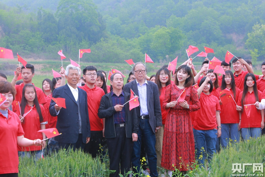 近200名農(nóng)科專家、職業(yè)農(nóng)民、農(nóng)科專業(yè)的大學(xué)生等一起高聲合唱,祝福祖國。央廣網(wǎng)發(fā) 楊凌示范區(qū)宣傳部供圖