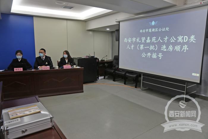 當(dāng)天的搖號(hào)活動(dòng)采取電腦搖號(hào)方式進(jìn)行,搖號(hào)使用的電腦設(shè)備及搖號(hào)軟件均由西安市蓮湖區(qū)公證處提供;所有參加本次搖號(hào)的D類(lèi)人才,通過(guò)電腦搖號(hào)系統(tǒng),一次性搖出所有D類(lèi)人才選房順序號(hào),并按照順序號(hào)依次進(jìn)行選房;整個(gè)分配過(guò)程由市住房保障工作人員、新聞媒體現(xiàn)場(chǎng)監(jiān)督,公證機(jī)關(guān)工作人員進(jìn)行現(xiàn)場(chǎng)監(jiān)督公證。