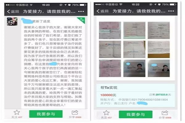 “輕松籌”和“愛心籌”是朋友圈比較活躍的捐款平臺(tái)。打開“輕松籌”主頁(yè),掃碼即可注冊(cè)登錄,填寫個(gè)人基本信息、籌款金額、籌款項(xiàng)目、籌款期限、醫(yī)院診斷證明照片和現(xiàn)有財(cái)產(chǎn)等信息即可發(fā)起項(xiàng)目,前后不超過20分鐘!皭坌幕I”平臺(tái)設(shè)有“推薦病友發(fā)起獎(jiǎng)現(xiàn)金”的欄目,推薦人不用甄別即可自薦,還可以為別人(病人)發(fā)起籌款,籌款達(dá)到一定數(shù)額推薦人自己可得到現(xiàn)金獎(jiǎng)勵(lì)。當(dāng)下網(wǎng)絡(luò)籌款逐漸成為趨勢(shì),如果捐款平臺(tái)只圖用戶數(shù)量增加,忽視鑒別求助信息的真?zhèn)、放松參與者的誠(chéng)實(shí)甄別,實(shí)踐中,缺乏嚴(yán)格審核即發(fā)布愛心捐助信息是虛假籌款信息泛濫的原因之一。