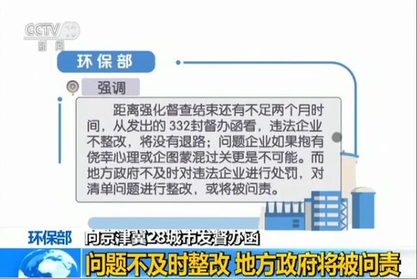 環(huán)保部強調(diào),距離強化督查結(jié)束還有不足兩個月時間,從發(fā)出的332封督辦函看,違法企業(yè)不整改,將沒有退路;問題企業(yè)如果抱有僥幸心理或企圖蒙混過關(guān)更是不可能。而地方政府不及時對違法企業(yè)進行處罰,對清單問題進行整改,或?qū)⒈粏栘?zé)。