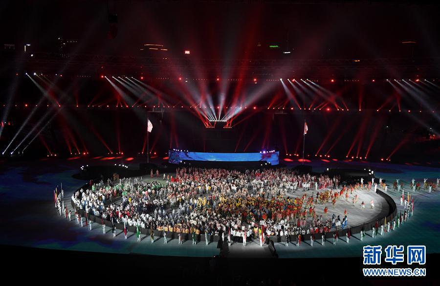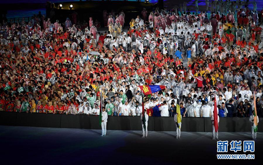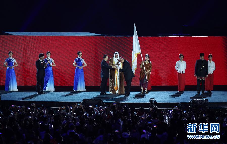 ↑這是閉幕式上升起印度尼西亞國(guó)旗。 新華社記者黃宗治攝