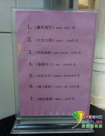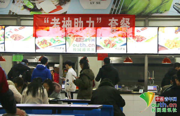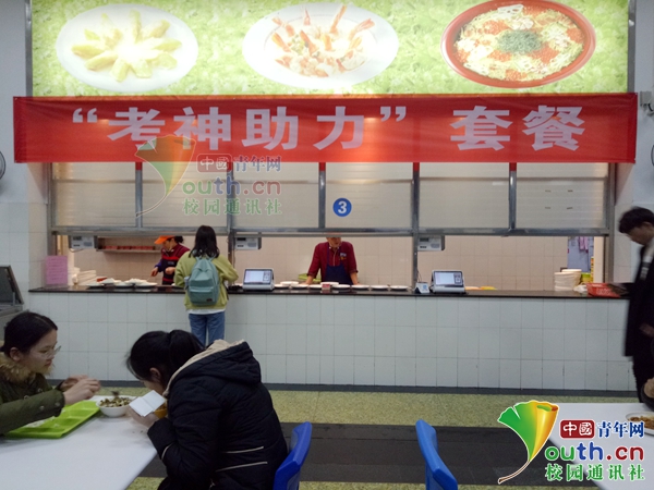 圖為四川農(nóng)業(yè)大學(xué)食堂推出“考神助力套餐”。中國青年網(wǎng)通訊員 公緒娜 攝