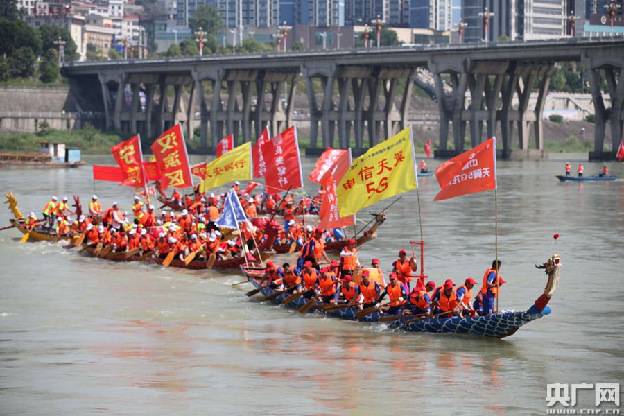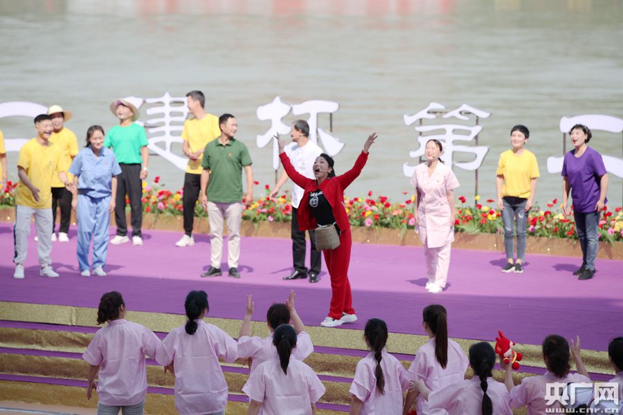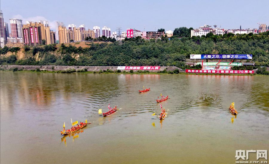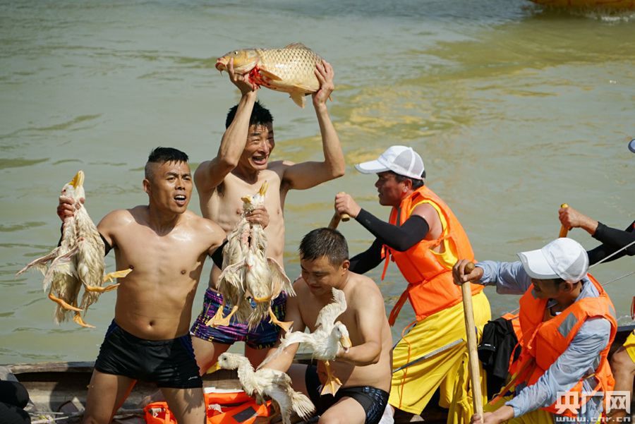 期間,現(xiàn)場還穿插進行了安康經典龍舟民俗——龍舟橫渡和搶鴨子摸鯉魚。圖為龍舟橫渡(央廣網發(fā) 趙華斌 攝)