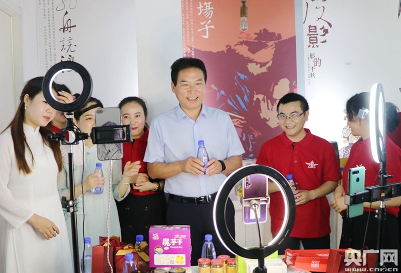 6月24日,安康市市長趙俊民(中)走進第六屆中國·安康富硒產(chǎn)品博覽會網(wǎng)絡帶貨直播間(央廣網(wǎng)發(fā) 安康市政府網(wǎng) 供圖)