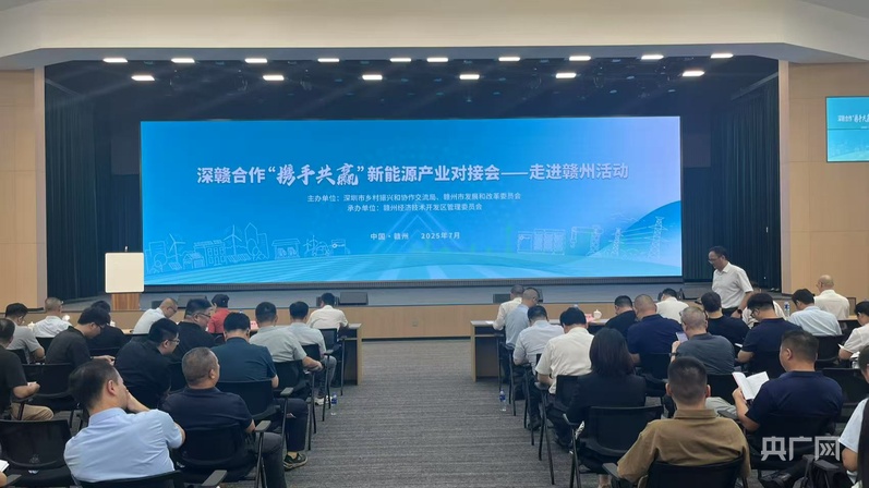 央廣網(wǎng)深圳7月18日消息(記者 榮冀晴)7月17日,深圳市鄉(xiāng)村振興和協(xié)作交流局、贛州市發(fā)展和改革委員會(huì)聯(lián)合主辦“攜手共贏”新能源產(chǎn)業(yè)對(duì)接會(huì)——走進(jìn)贛州活動(dòng),旨在為深圳、贛州兩地企業(yè)搭建交流平臺(tái),加強(qiáng)兩地投資、產(chǎn)品、技術(shù)、要素等資源雙向?qū),推?dòng)新能源產(chǎn)業(yè)的共贏發(fā)展。12家深圳新能源企業(yè)代表以及贛州市相關(guān)產(chǎn)業(yè)園區(qū)運(yùn)營(yíng)方和31家贛州國(guó)企、民企代表,共計(jì)100余人參會(huì)。