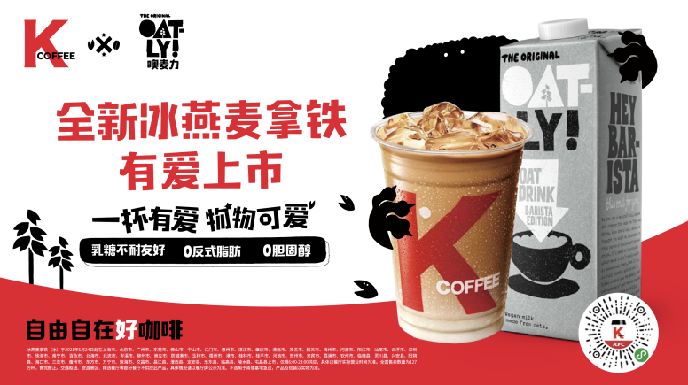 聯(lián)手“植物蛋白”行業(yè)巨頭——全球燕麥植物基領(lǐng)導(dǎo)品牌OATLY噢麥力,肯德基 KCOFFEE以“一杯有愛(ài) 物物可愛(ài)”為主題,全新推出的冰燕麥拿鐵新品于5月24日全新上市。