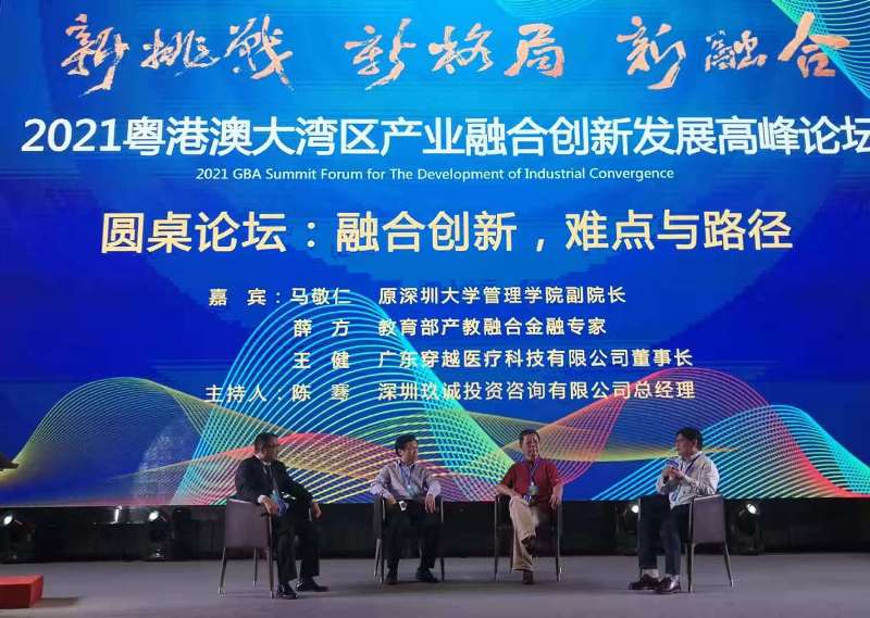 論壇上還開展了以“融合創(chuàng)新,難點與路徑”為主題的圓桌論壇,原深圳大學(xué)管理學(xué)院副院長馬敬仁、教育部產(chǎn)教融合金融專家薛方、廣東穿越醫(yī)療科技有限公司董事長王健、深圳玖誠投資咨詢有限公司總經(jīng)理陳騫等專家就此主題展開深度探討交流,碰撞出了不少精彩觀點。