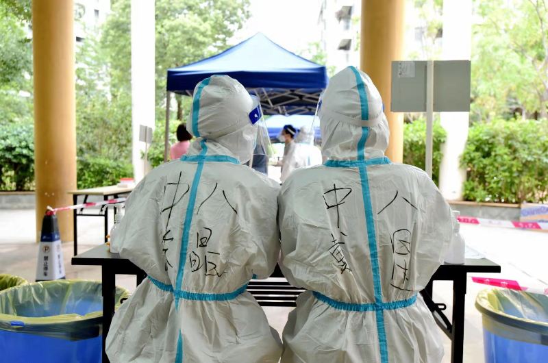 全院上下高效配合,積極完成各項(xiàng)采樣工作任務(wù)……烈日下,燈光里,藍(lán)白相間的防護(hù)服成了大街小巷最動(dòng)人的身影。