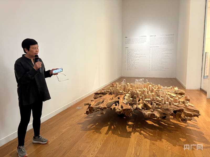 藝術(shù)家沈遠(yuǎn)介紹她為深圳創(chuàng)作的作品《城中村,村中城》(央廣網(wǎng)見習(xí)記者 鐘金秀攝)