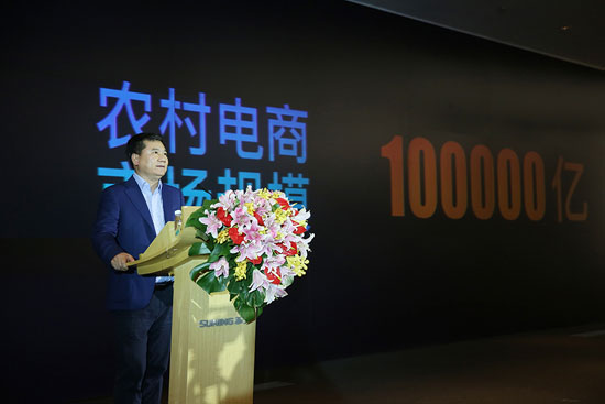蘇寧控股集團(tuán)董事長(zhǎng)張近東在農(nóng)村電商戰(zhàn)略發(fā)布會(huì)上演講