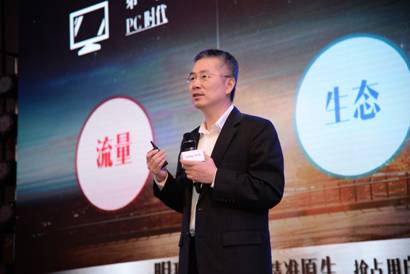 圖為百度大客戶部總經(jīng)理曾華在分享全域旅游發(fā)展雙引擎