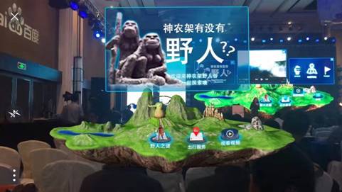 據(jù)了解,百度和神農(nóng)架林區(qū)人民政府開啟全面戰(zhàn)略合作的第一步是“AR觀山”,這也是全域旅游行業(yè)首次AR營銷創(chuàng)舉,F(xiàn)場上,百度大客戶部行業(yè)群組總監(jiān)陳明月展示了合作成果。用戶打開手機(jī)百度APP,在線上入口用文字或語音輸入“神農(nóng)架”,即可進(jìn)入神農(nóng)架林區(qū)品專頁面。當(dāng)點(diǎn)擊“AR觀山”時,神農(nóng)架的山脊從手機(jī)中延展出來,“野人”在叢林中穿梭,自然氣息撲面而來……用戶能在身臨其境的體驗(yàn)中激發(fā)潛藏在心底的探秘沖動。同時,用戶也可以通過線下入口,以拍攝神農(nóng)架林區(qū)地圖的方式觸發(fā)景點(diǎn)AR,進(jìn)行“多樣”觀山。