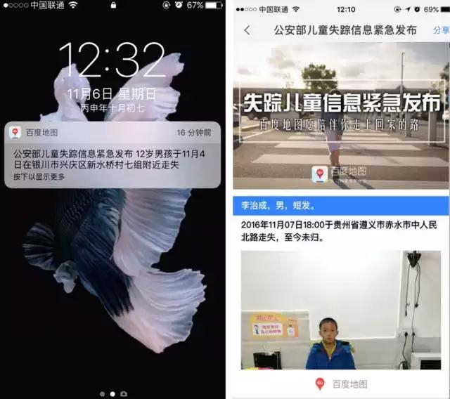 手機百度精準推送兒童失蹤信息 昨日發(fā)出首條尋人消息