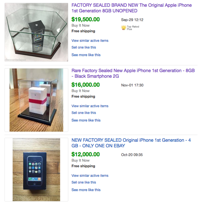 外媒截取了一些在ebay上賣初代iPhone的標(biāo)價(jià):