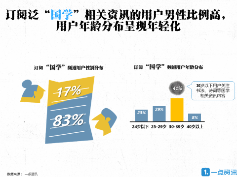 金治指出,這些數(shù)據(jù)來源于對關(guān)注“國學(xué)”相關(guān)頻道的訂閱用戶。通過對群體性別、年齡階段、所處地域等維度數(shù)據(jù)進行精準(zhǔn)分析,進而得出這樣一個權(quán)威報告。鳳凰網(wǎng)聯(lián)合一點資訊舉辦此次研討會的初衷,就是希望通過科技手段為傳播國學(xué)貢獻力量,為用戶帶來更具實用性和價值性內(nèi)容。