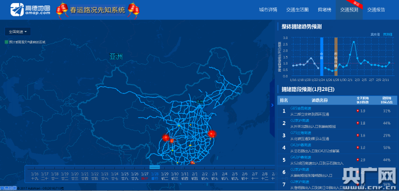 二、高德地圖推“春運(yùn)路況先知系統(tǒng)”