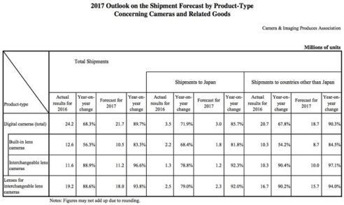 據(jù)CIPA(日本國際相機(jī)影像器材工業(yè)協(xié)會)日前發(fā)布的一份數(shù)碼影像產(chǎn)品市場報告顯示,2016年影像產(chǎn)品總出貨量約為2420萬套,比2015年同期減少31.7%。據(jù)CIPA的報告預(yù)測,2017年數(shù)碼相機(jī)產(chǎn)品的總出貨量預(yù)計(jì)將會在2170萬套左右,同比減少10.3%?梢哉f,整個行業(yè)依然處于持續(xù)的寒潮中。