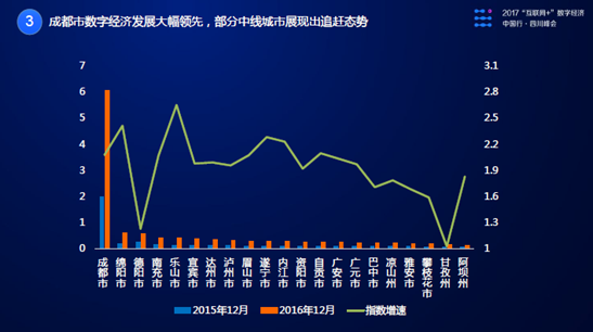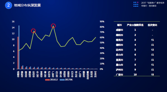 以成都為核心的成都平原地區(qū)已成為數(shù)字經(jīng)濟發(fā)展核心地帶,帶動四川全省消費升級。達州、樂山、南充、綿陽、德陽等城市的數(shù)字經(jīng)濟均取得了較快增長,2017年上半年整體增速領(lǐng)先于四川其他區(qū)域。