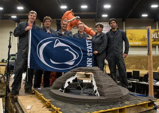 在這輪比賽中,Branch and Foster團(tuán)隊(duì)3D打印的穹頂極限承重3726磅。排在第二位的是來自賓夕法尼亞州立大學(xué)的團(tuán)隊(duì),獲得NASA獎(jiǎng)金15萬美元。