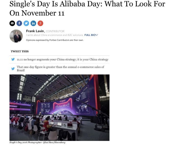 福布斯雜志在文章還寫到: 谷歌改變了世界處理和改變信息的方式,但是沒(méi)有谷歌日。 亞馬遜改變了美國(guó)消費(fèi)者的購(gòu)物習(xí)慣,但是沒(méi)有亞馬遜日。而在中國(guó),卻有一個(gè)阿里巴巴日:11月11日,又稱天貓雙11全球購(gòu)物節(jié),這個(gè)購(gòu)物節(jié)是全球規(guī)模最大的,由天貓所推動(dòng)。阿里巴巴不僅改變了中國(guó)消費(fèi)者的購(gòu)物習(xí)慣,同時(shí)也改變了商戶的習(xí)慣。