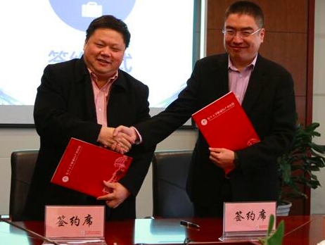 復旦大學附屬婦產(chǎn)科醫(yī)院院長徐叢劍(左)和騰訊互聯(lián)網(wǎng)+副總裁張巍(右)簽署合作協(xié)議