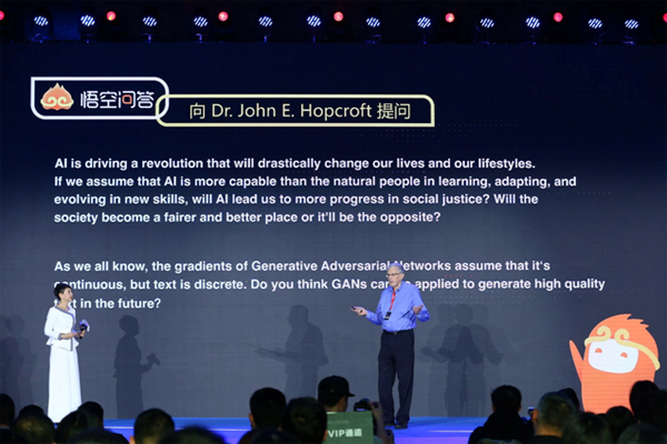 大會舉辦前,即在線上引發(fā)網(wǎng)友普遍關(guān)注,近1200名網(wǎng)友通過今日頭條旗下問答社區(qū)“悟空問答”參與了相關(guān)問題的討論,并由主辦方精選出部分問題在大會上向John E. hopcroft教授提問。