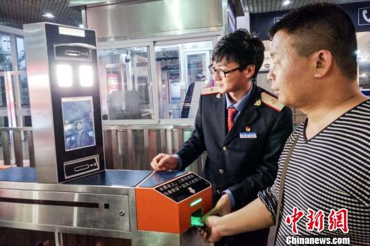 圖為鐵路工作人員指導(dǎo)旅客“刷臉”進(jìn)站。王丹惠攝