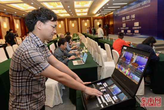 1日,福州市組織了一場專項演練,基本達到預期目標。圖為在新聞發(fā)布廳,媒體記者體驗采訪流程。葉義斌 攝