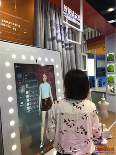 智能試衣鏡。經(jīng)濟日報-中國經(jīng)濟網(wǎng)記者王婉瑩/攝