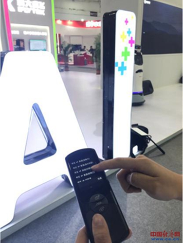 科大訊飛二代翻譯機。經(jīng)濟日報-中國經(jīng)濟網(wǎng)記者王婉瑩/攝