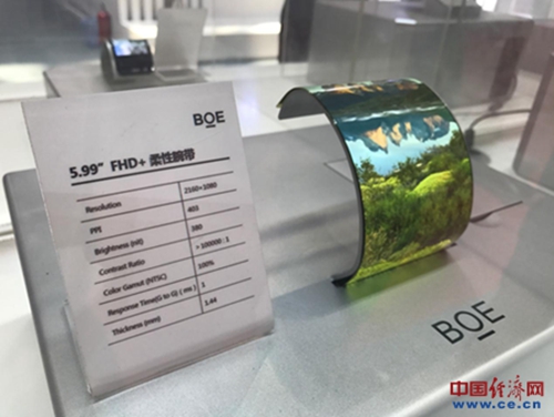 智能穿戴設備,京東方柔性腕帶。經(jīng)濟日報-中國經(jīng)濟網(wǎng)記者王婉瑩/攝