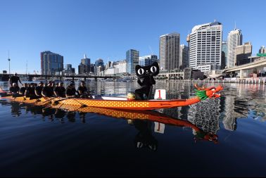 (一艘來自杭州千島湖的龍舟從寧波港出發(fā)一路漂洋過海8000公里到達澳大利亞悉尼情人港)