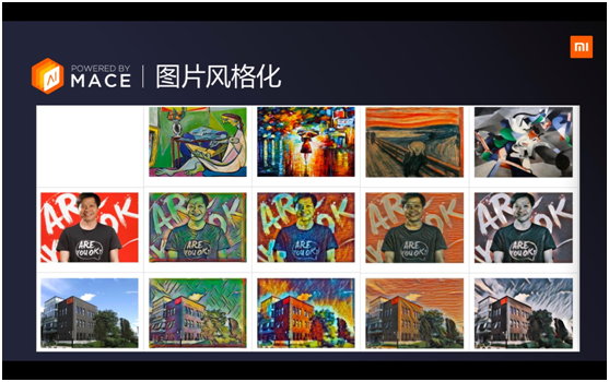 崔寶秋介紹,MACE的應(yīng)用場景豐富,包括AI單攝人像模式、圖片風(fēng)格化、AI場景識(shí)別、圖像超分辨率、離線機(jī)器翻譯、語音等。以AI單攝人像模式為例,想拍出背景虛化的效果,傳統(tǒng)的手機(jī)需要用兩顆攝像頭,而通過小米的AI拍照技術(shù),只需要一個(gè)攝像頭,就可以拍出前實(shí)后虛的效果。AI場景識(shí)別,可以支持25種標(biāo)簽,多達(dá)206種場景識(shí)別,幫助普通的用戶拍出攝影大師的效果。更有趣味的是圖片風(fēng)格化,一張圖片,在小米AI算法的支撐下,可以實(shí)現(xiàn)藝術(shù)化創(chuàng)作,讓拍出來的照片更有藝術(shù)感。