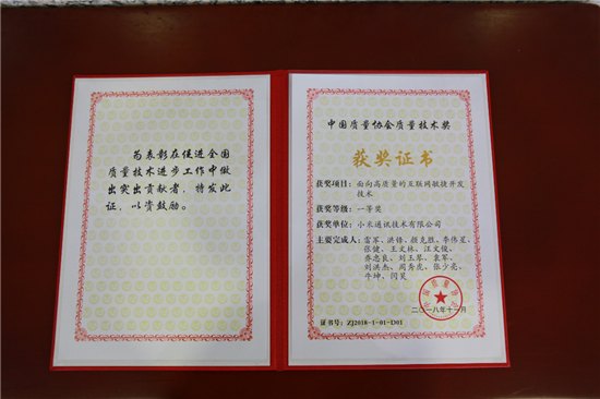 中國質(zhì)量協(xié)會(huì)授予小米“質(zhì)量技術(shù)獎(jiǎng)一等獎(jiǎng)”