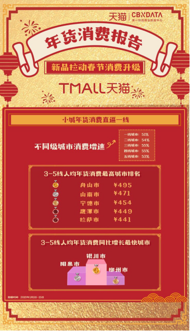 農(nóng)歷新年剛過,天貓就曬出了自己的春節(jié)成績單:北京、上海、廣州、西安、杭州等破百個核心城市春節(jié)期間“不打烊”,日均實現(xiàn)54%的同比增長,數(shù)碼產(chǎn)品、服飾、化妝品等春節(jié)禮品漲幅最高;與此同時,春節(jié)前夕,天貓上三四線城市年貨消費增速達55%,舟山、山南、寧德等成為成為年貨消費最高的小城。
