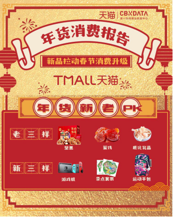 天貓數(shù)據(jù)顯示,盡管堅果、蜜餞和膨化食品仍是年貨必備“老三樣”,但新需求和過年生活場景正在誕生,從增速看,游戲機、景點門票和運動手包打敗了其他貨品,成為緩解年輕人“春節(jié)焦慮癥”的“新三樣”。