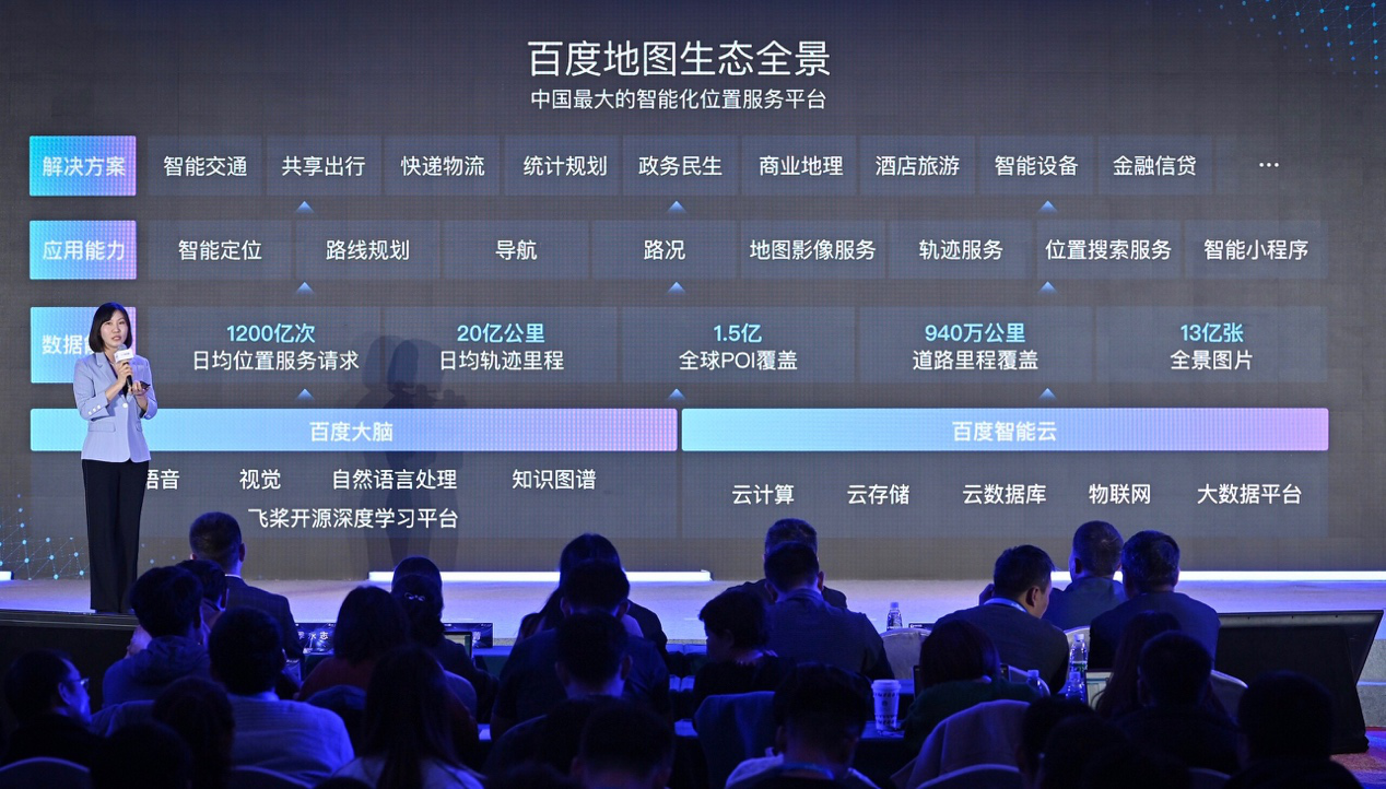 百度地圖事業(yè)部總經(jīng)理李瑩介紹新一代人工智能地圖生態(tài)全景。(百度地圖供圖)